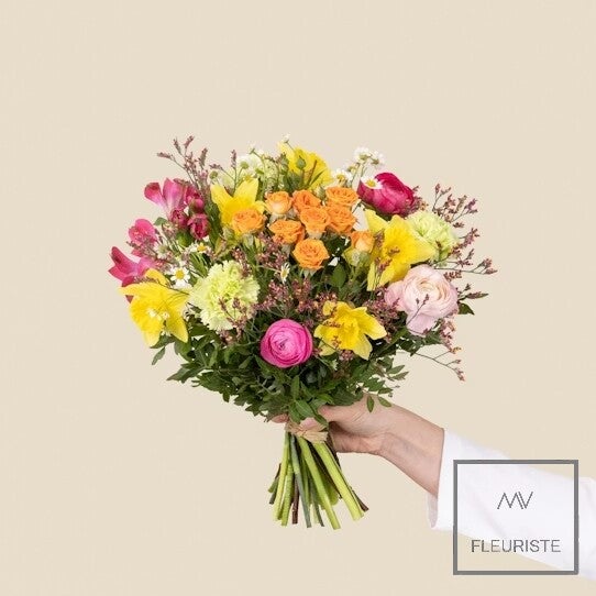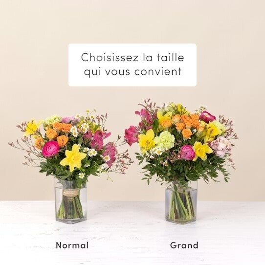 Le visuel du produit floral présenté est contractuel mais, s'agissant d'une création réalisée par un artisan fleuriste sur la base d’un assortiment de fleurs fraîches qui est, par sa nature, artisanale, elle pourra parfois en différer légèrement à la livraison.